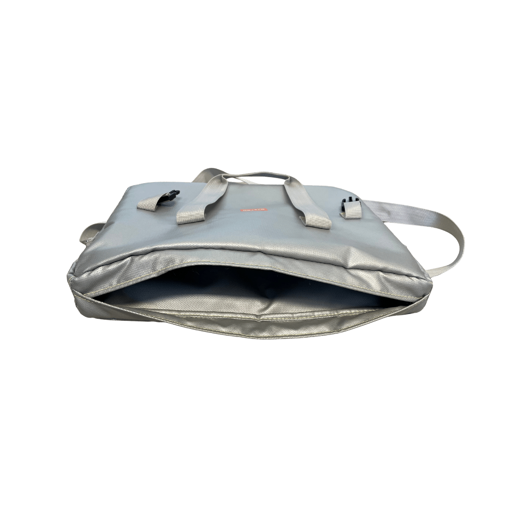 Entwickelt mit einem innovativen 3-Lagen-System aus beschichteten Spezialfasern und einer hitzebeständigen Matte, reduziert die Tasche die Ausbreitung von Hitze und Rauch im Brandfall. Sie hält kurzfristig Temperaturen bis zu 1.000 °C stand..